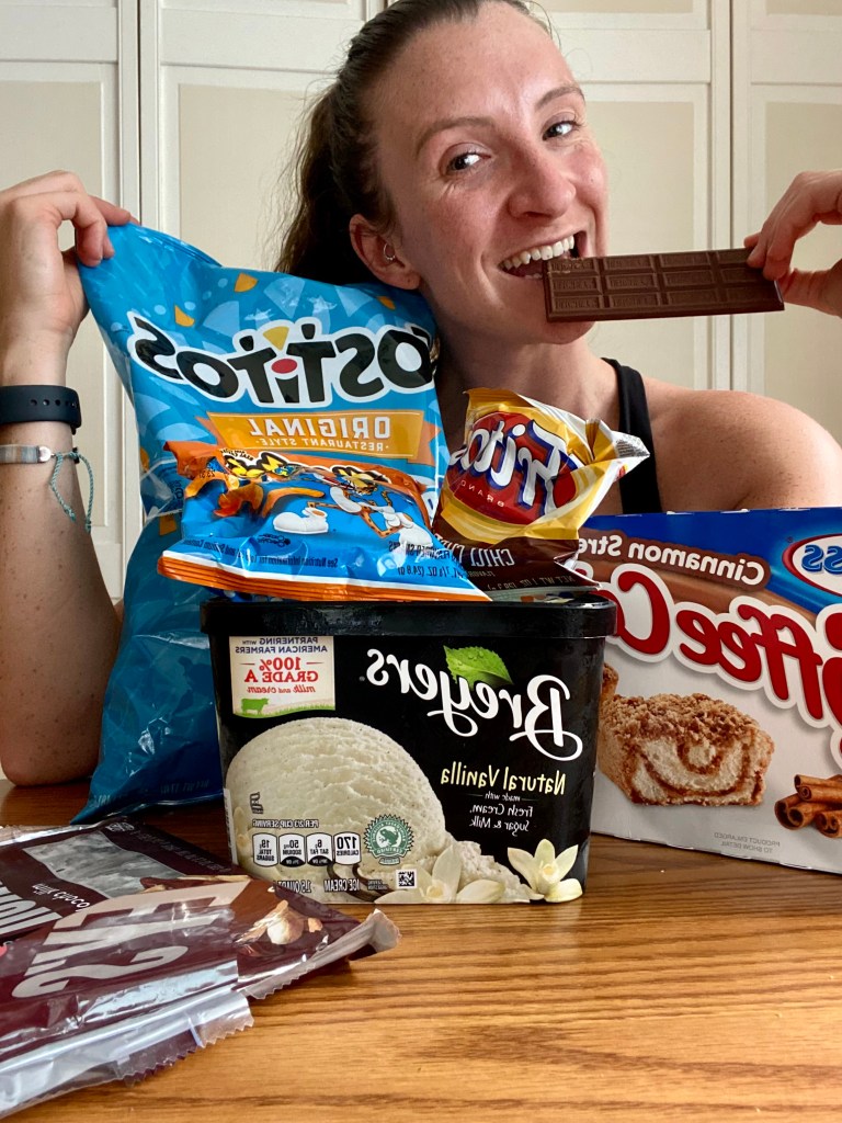 Did you see the picture of me with all those snacks? Tostitos, cheetos, coffee cakes, ice cream, fritos, and a hershey bar which I consumed in it’s entirety after taking the picture. The point is, I eat all of these items. Surprise! In this post I am not going to tell you to stop snacking. That’s right. I’m not telling you to quit snacking. Anybody who tells you that you need to stop snacking to reach your goals is wrong. I love snacks, and if you’re here, so do you. I’m happy to tell you that you do not need to stop snacking in order to lose weight, get toned, and feel like a sexy unicorn.